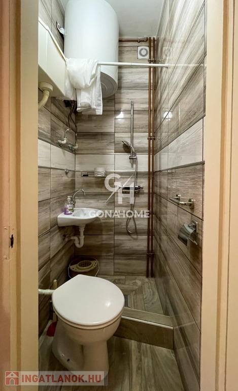 Melegvíz: alsó szinten villanybojler, emeleten gázkazán