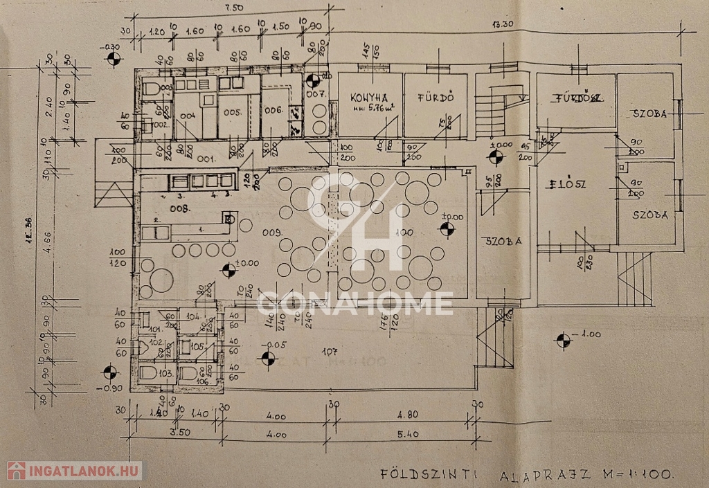 Földszint 2/3 részén helyezkedik el