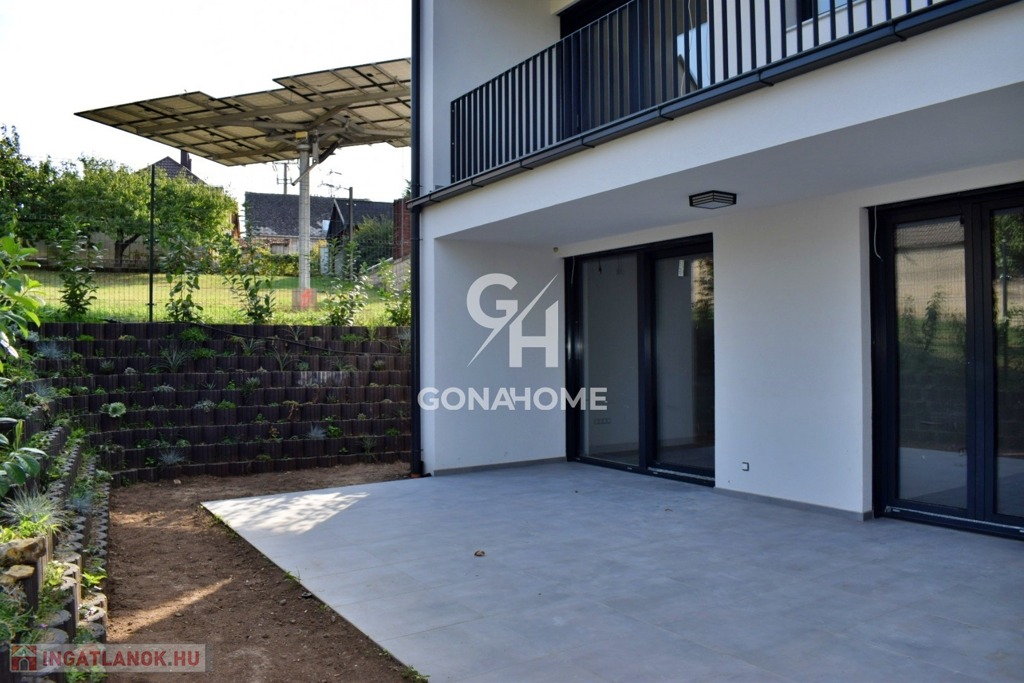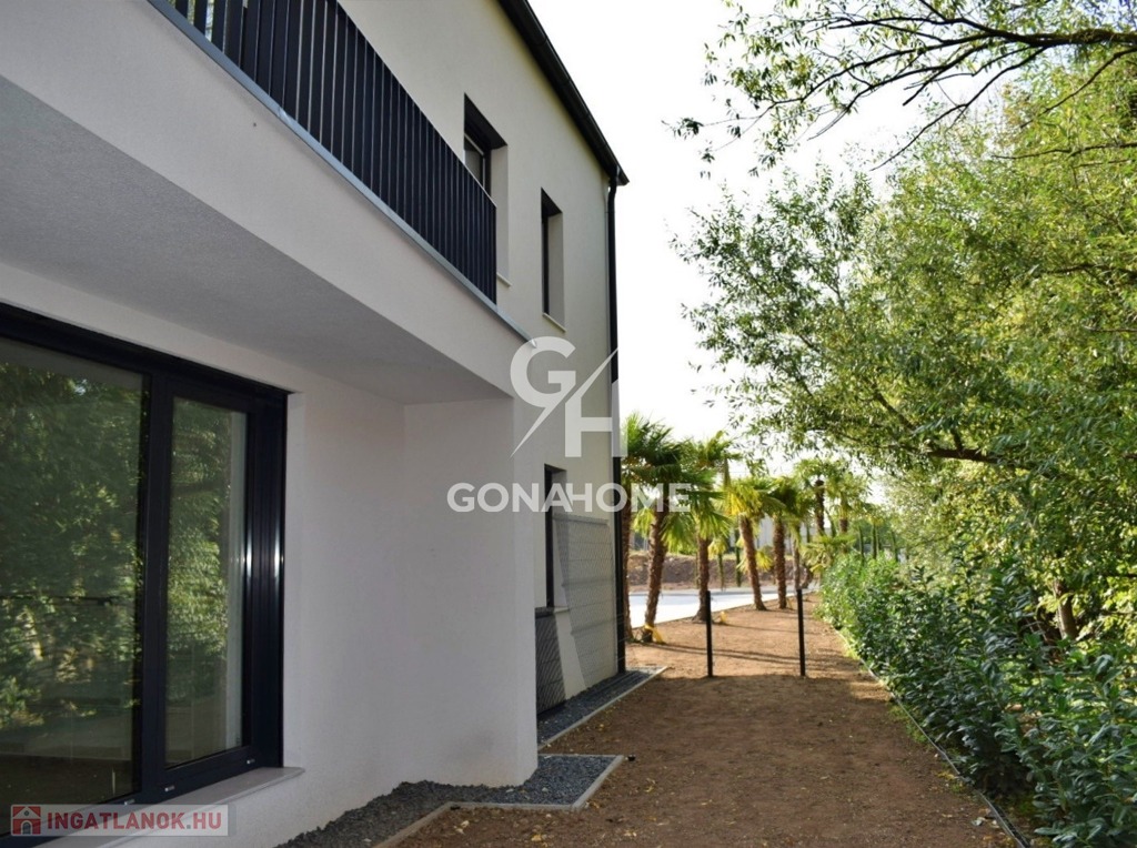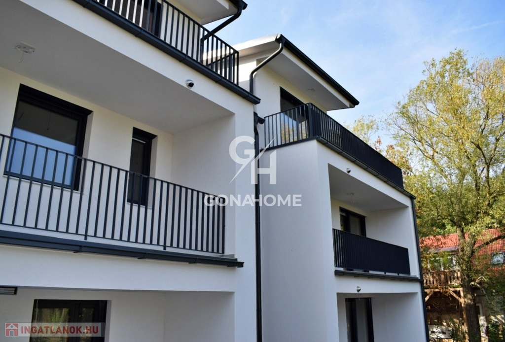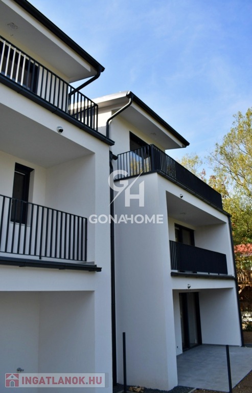 ELADÓ 1. EMELETI, 3 SZOBÁS, DUPLA ERKÉLYES ÚJ ÉPÍTÉSŰ LAKÁS, NEMESVÁMOS ELSŐ MODERN 6 LAKÁSOS TÁRSASHÁZÁBAN, bútorozva, gépesítve, AJÁNDÉK JAKUZZIVAL
