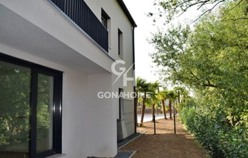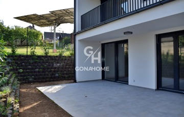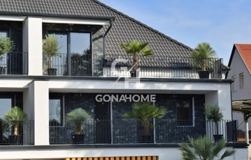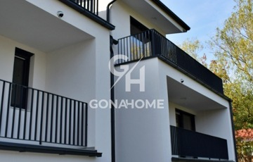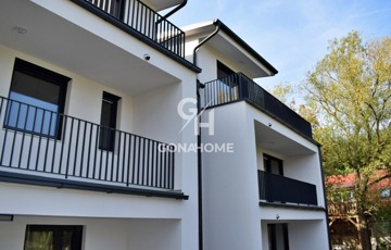 ELADÓ 1. EMELETI, 3 SZOBÁS, DUPLA ERKÉLYES ÚJ ÉPÍTÉSŰ LAKÁS, NEMESVÁMOS ELSŐ MODERN 6 LAKÁSOS TÁRSASHÁZÁBAN, bútorozva, gépesítve, AJÁNDÉK JAKUZZIVAL