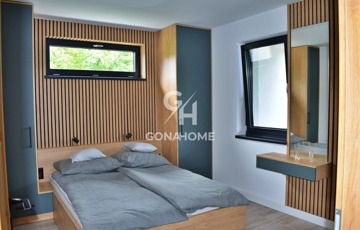 - Egyedi készítésű (helytakarékos) bútorok, visszafogott stílusban megtervezve